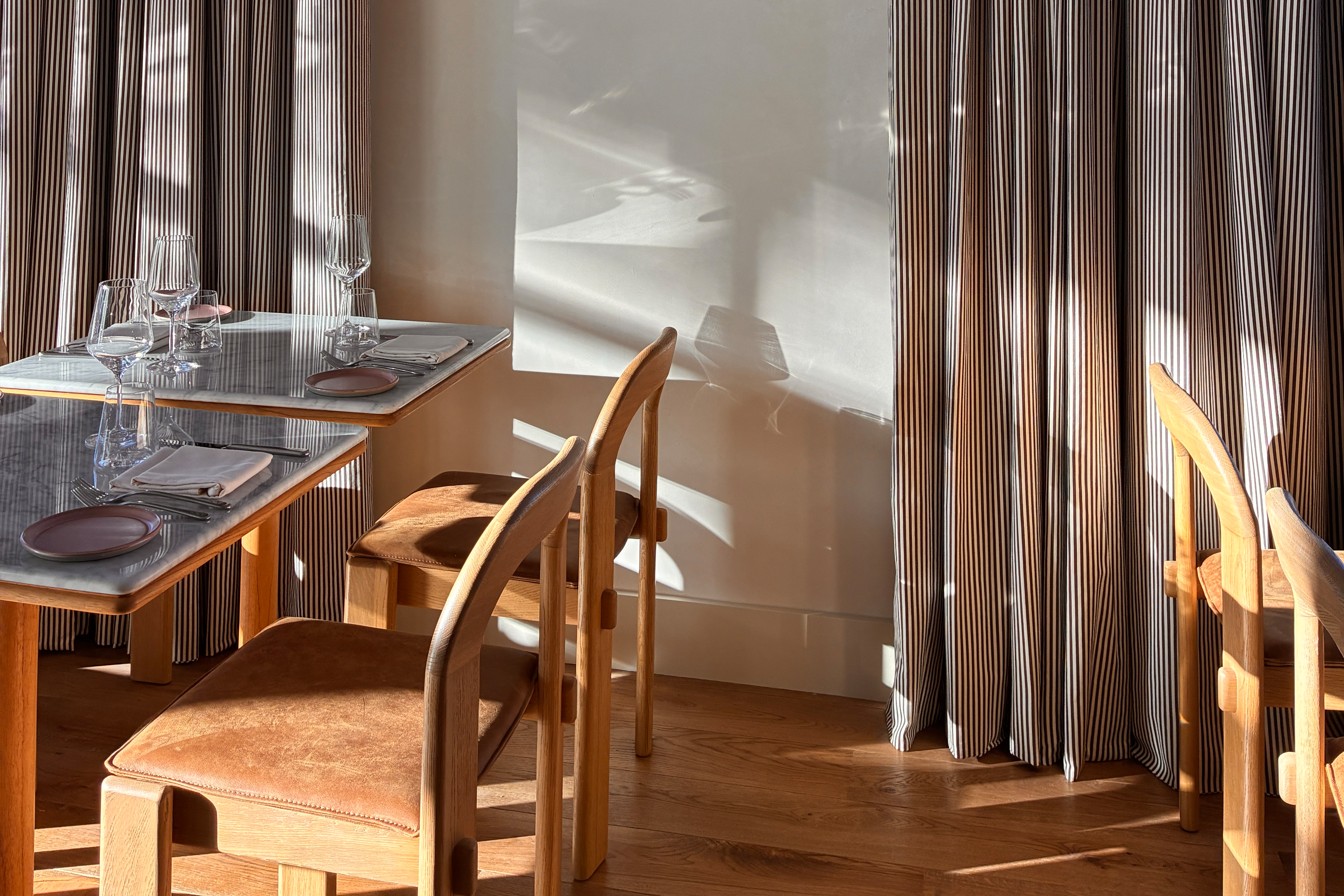 Step inside Emre, where the spirit of Mediterranean hospitality meets the soul of Paso Robles. The design draws from the region’s sun-soaked vineyards and the timeless textures of the Mediterranean coast—think hand-troweled plaster walls, dark-stained wood wainscott, aged brass accents, and soft drapery swaying in the breeze. Earthy tones meet ocean hues, creating a space that feels both grounded and transporting. Every corner is curated to encourage connection—whether gathered around a communal table or tucked into a cozy alcove bathed in dappled light.