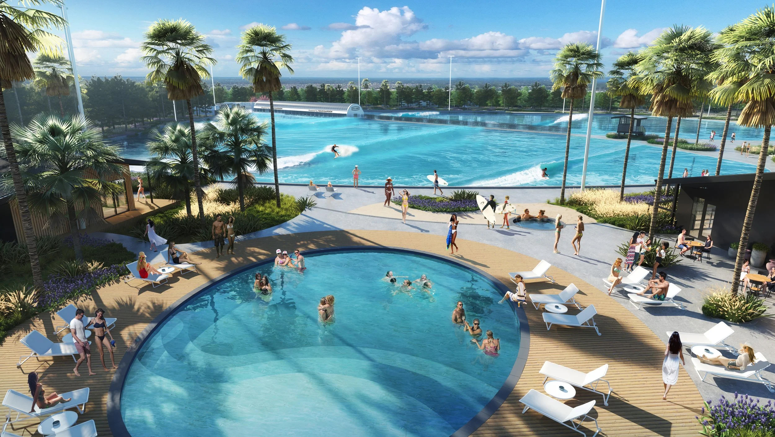 HTX Surf will make Houston, Texas the go-to surfing and action sport destination in America. Anchored by perfect waves for all levels. HTX Surf will also provide international food and drink options, pump track, training and wellness facilities, music and event lawns, a leisure pool and beach club, and a Membership Club. We create a relaxed, ocean front environment that is guaranteed to feature highly on the must-visit lists of surfers and beach enthusiasts. In addition to being a place where friends and family can enjoy the beach vibe and surfing perfect waves, HTX Surf will literally bring a beautiful beach and resort experience to the center of Houston, Texas. Join us at HTX and come “Surf, Eat, Relax, Repeat”.